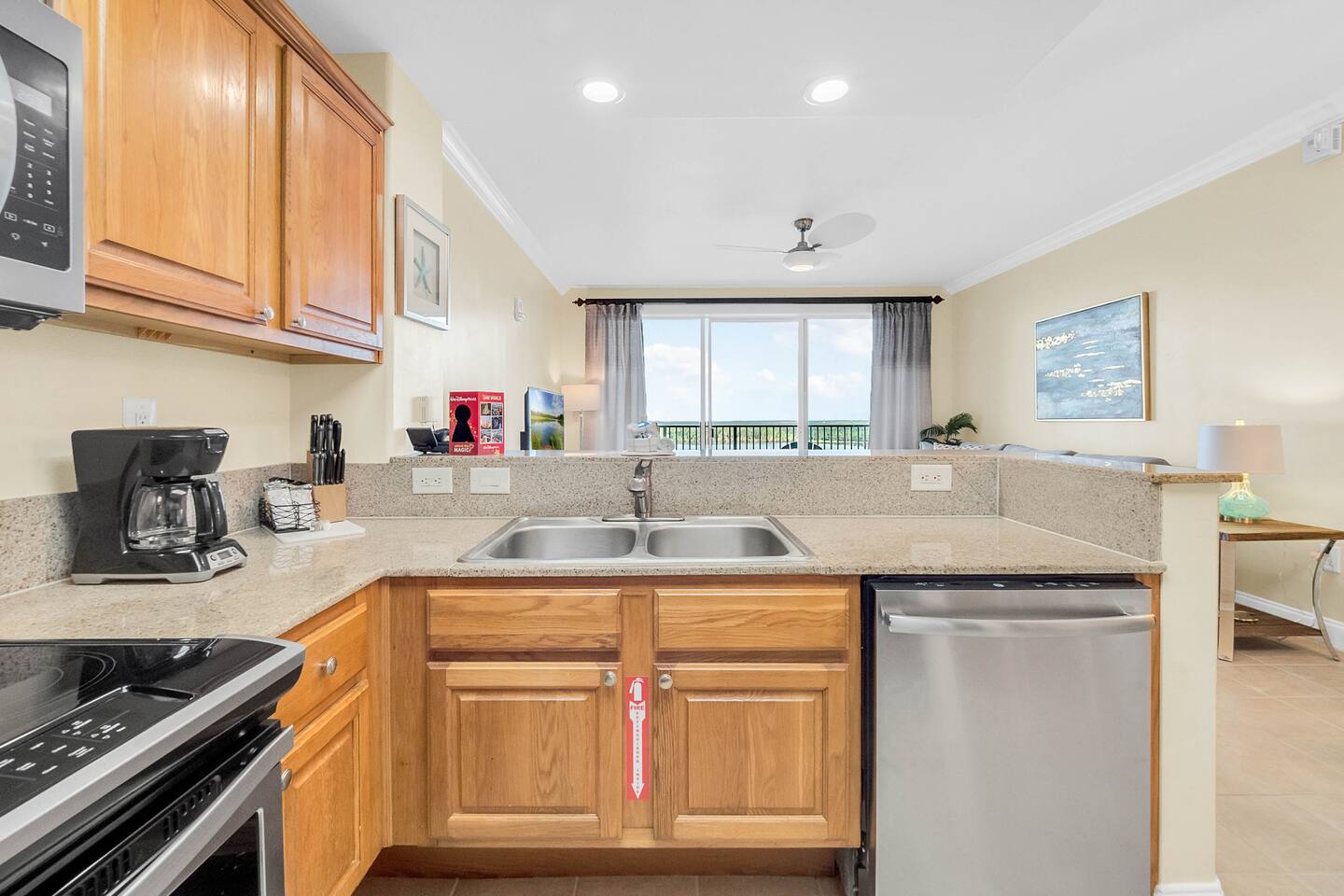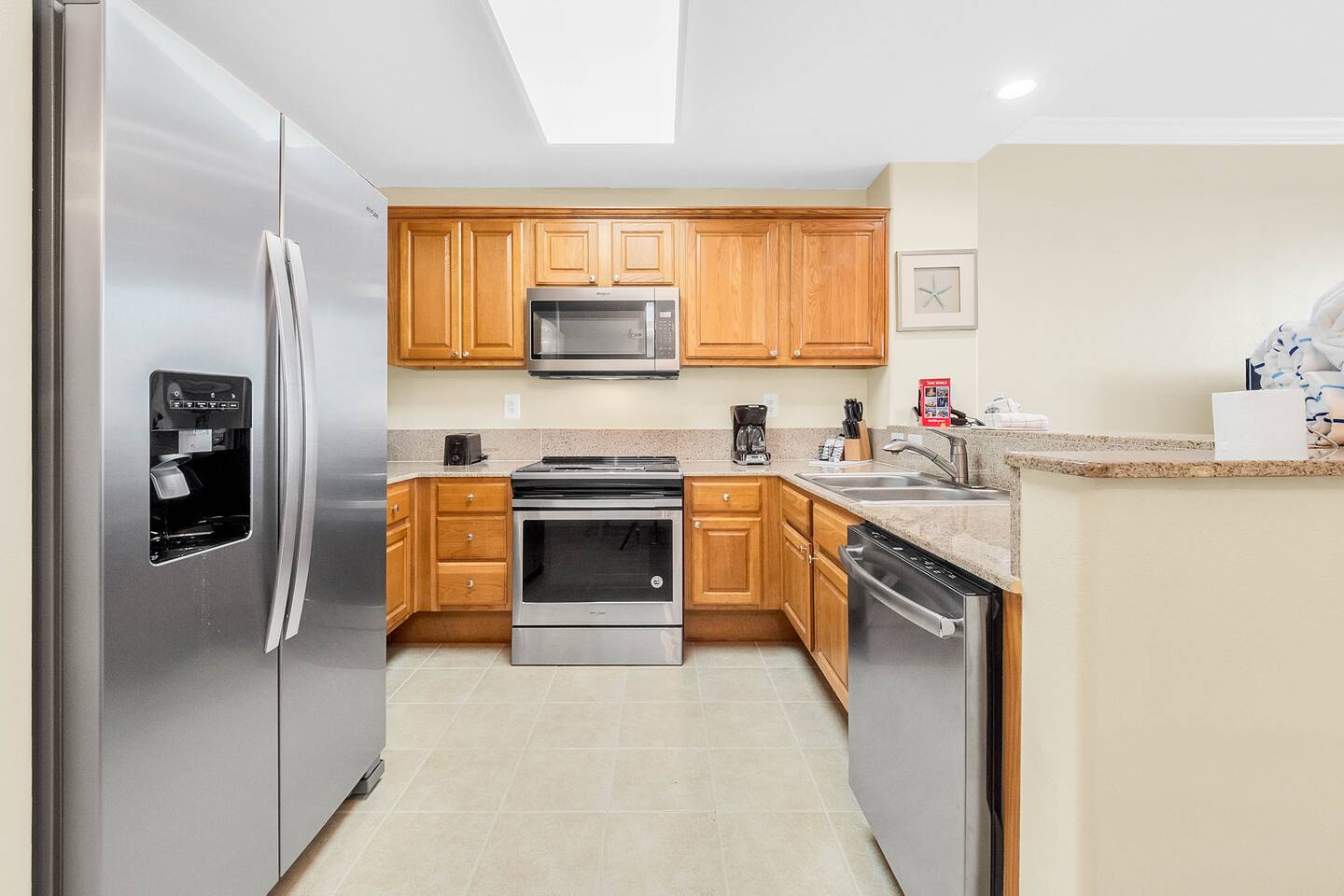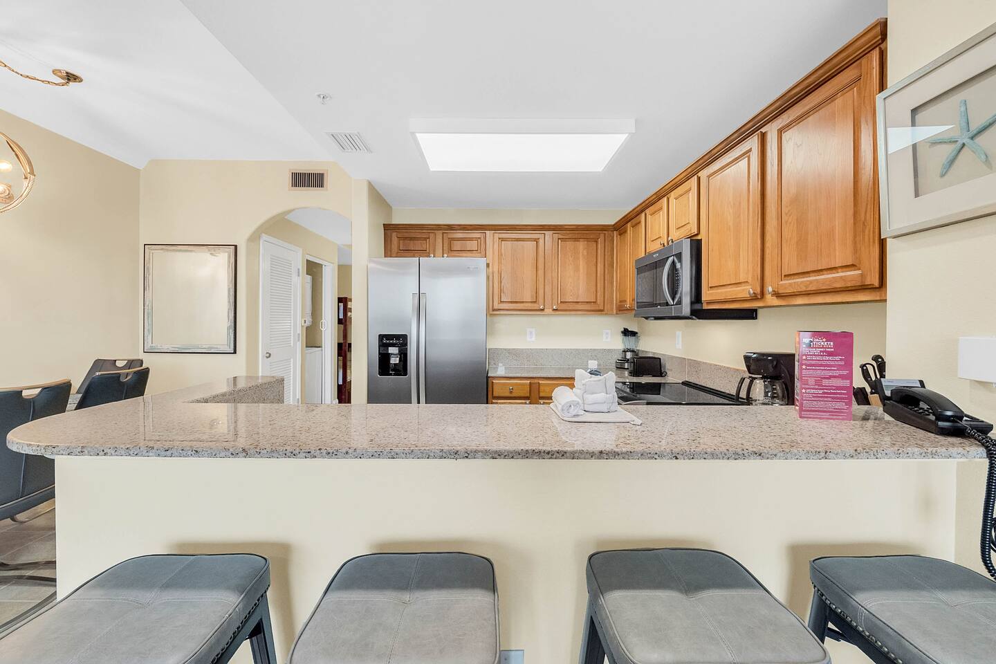 Our space has been recently updated and is one of the best units in the building. The master features a full size bed. There is a bunkbed for kids in the hallway and the sectional in the living room converts to a full size bed. The kitchen is stocked with everything you need to prepare your own meals and the front desk and concierge are available to answer any questions you have and help you plan your activities.